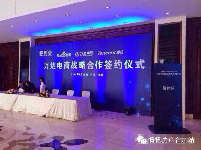 8月29日,万达集团、百度、腾讯在深圳举行战略合作签约仪式,宣布共同出资在香港注册成立万达电子商务公司。万达电商计划一期投资人民币50亿元,万达集团持有70%股权,百度、腾讯各持15%股权。万达集团董事长王健林,百度公司董事长兼首席执行官李彦宏,腾讯公司董事会主席兼首席执行官马化腾共同出席签约仪式。