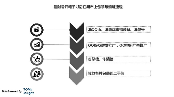 信封号,就是被盗的QQ号。信封号产业链,就是QQ号盗取、销赃、并利用获利的产业链。被盗的QQ在黑市上称之为“信封号”。在中国,QQ作为人人必备的IM软件,有8亿以上的用户数,最大2亿以上的同时在线量,对周边生态环境有着不可估量的价值。 可能很多人都有过自己的QQ号被盗的经历。而被盗后的QQ号有什么用处呢?在黑市上怎么流转?我们分成销赃和生产两部分来观察。