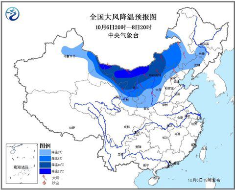预计,未来两天,新疆东部、西北地区东部、内蒙古、华北北部、东北地区南部等地将先后有4~6级偏北风,阵风风力可达到7~8级,气温随之下降6~10℃,其中,内蒙古中西部、甘肃西部、宁夏北部等局部地区降温可达10~14℃;南疆盆地、内蒙古西部、甘肃河西走廊等地局地有浮尘或扬沙天气。