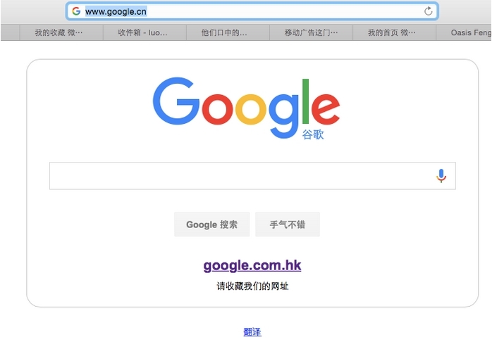 在成功加载 http://www.google.cn/ 后,点击后页面会自动跳转至 google.com.hk,而跳转以后的页面则需「翻墙」后才能正常显示。