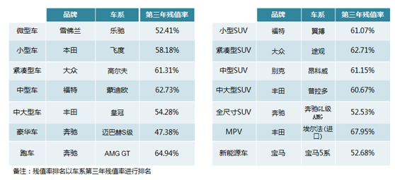 一.品牌、车系残值率总体排名(第三年残值率)