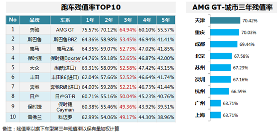 跑车残值率TOP10,德系占据5席;AMGGT级No.1,其城市残值率天津居首。