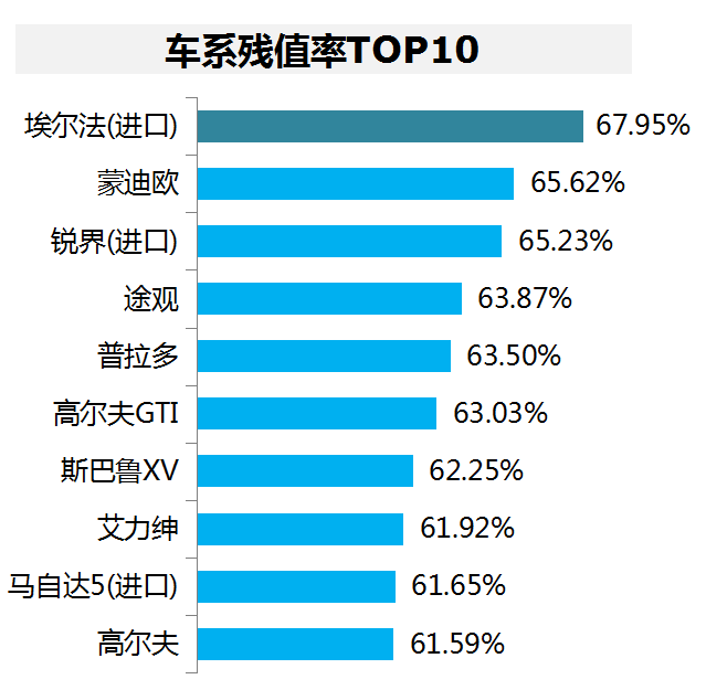 车系残值率TOP10: