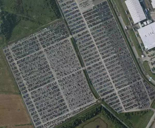 英国一个非常著名的汽车厂商就在希尔内斯港口附近拥有这样一个新车墓地,数以万计的汽车整齐排放在一起,零零散散有几个保安巡逻,防止有人偷车。