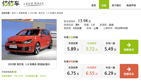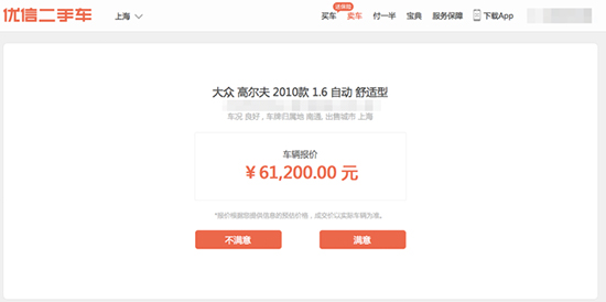 个人建议,在估值页面中,除了以上因素加入保养地或者出险情况将会更加科学,比如是一直在4S店保养,还是首保在4S店其它保养去维修厂等,将线下估价模式引入电商估价,再通过互联网的先天优势——大数据进行分析,这样得到的估价会更智能,更具参考价值,可以预见的是如果该平台真能将这套智能化系统完善,对于二手车市场的影响力是非常可观的。