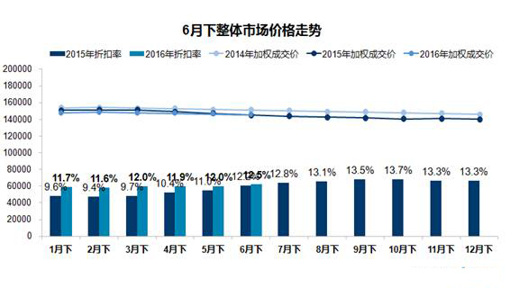 不过和去年同期相比,今年的成交价数据还有略有上涨。据数据显示:今年6月乘用车市场整体平均成交价格为145,397元,环比下降859元。与2015年同期成交价相比,同比上升0.3%,折扣率为12.5%,平均折扣金额为20,880元。