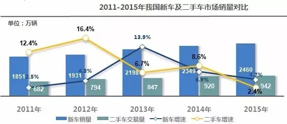 第一、2015年,受中国车市整体遇冷影响,我国二手车交易规模同比增速显著回落,但近5年的年均复合增速仍略高于新车市场。相信随着新车市场进入调整周期,以及国家对于二手车市场发展的重视,未来几年的二手车市场潜力将会不断释放,交易规模也将保持较高的增长势头。