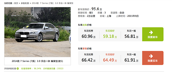 2014款 730Li 臻享型;上牌日期:2015年9月;行驶里程:2万公里