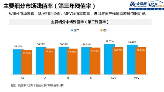 备注1: 以上为《中国二手车残值指数》的摘录章节。完整版报告包含二手车市场分析,以及从A00级别到C级车,以及SUV,MPV各个级别车型的国产车与进口车残值前十名。查看完整版报告请搜索并关注“众调网”公众号。