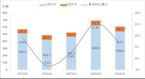 根据中国汽车技术研究中心(下称“中汽中心”)数据资源中心日前发布的数据,今年一季度,我国汽车市场累计零售量为606.3万辆,同比增长6.7%,增速相比去年去年四季度有所回落。其中,乘用车一季度终端零售为538.0万辆,同比增长5.2%,商用车终端零售为68.3万辆,同比增长19.5%。中汽中心负责人表示,一季度车市增速回落的主要原因是2015年底节能惠民工程退出导致去年年末出现销售热潮,以及房地产市场回暖对车市购 【点击详情】