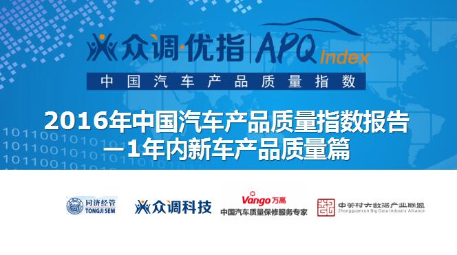 2017年3月15号,众调科技发布2016年中国汽车产品质量指数报告——1年内新车质量篇,报告显示,汽车综合质量问题主要集中在行驶过程质量问题、车身外观及内饰问题。
